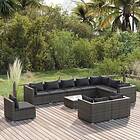 vidaXL Loungegrupp för trädgården m. dynor 11 delar konstrotting grå 3102669