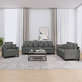 vidaXL Soffgrupp med kuddar 3 delar mörkgrå tyg 3201633