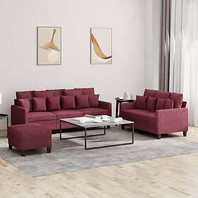 vidaXL Soffgrupp med dynor 3 delar Vinröd tyg 3201678