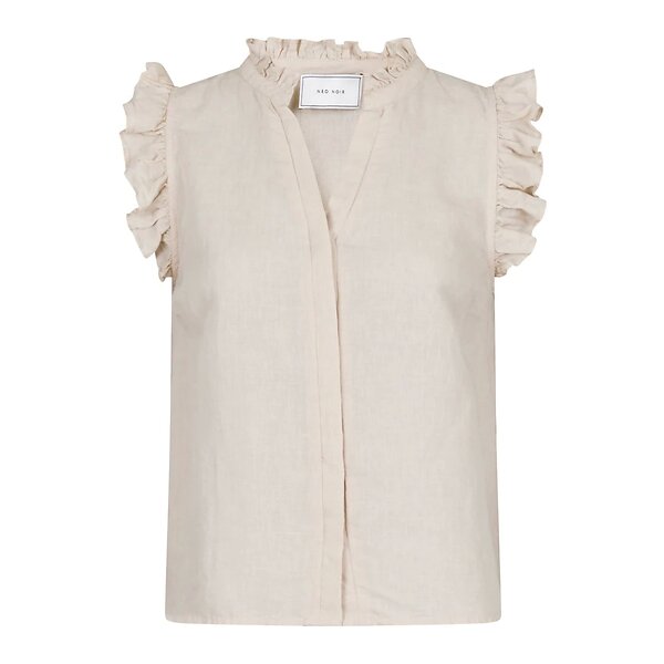 Neo Noir Topp med Volangdetaljer och V-Hals i Sand Beige, Dam