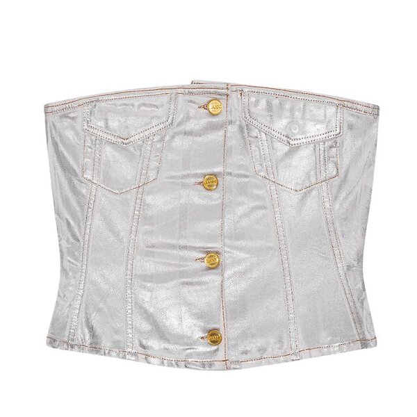 Ganni Top Foil Denim Corsage Dam