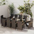 vidaXL Matgrupp för trädgården med dynor 11 delar konstrotting svart 3094932