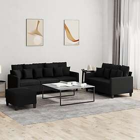 vidaXL Soffgrupp med dynor 3 delar svart tyg 3201676