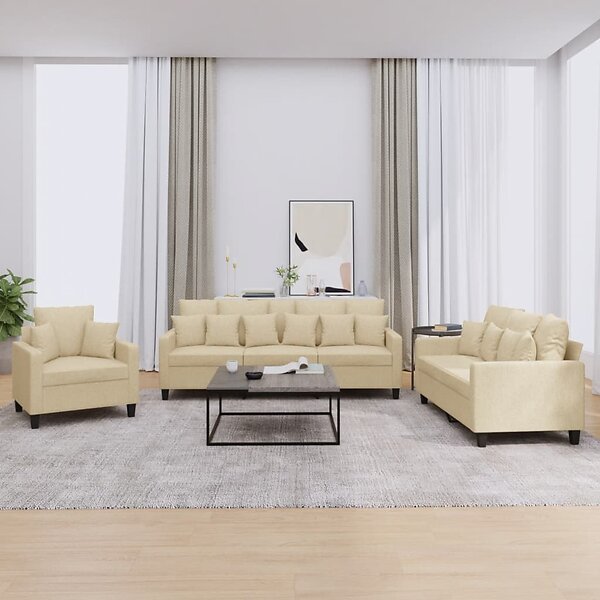 vidaXL Soffgrupp med kuddar 3 delar gräddvit tyg 3201634