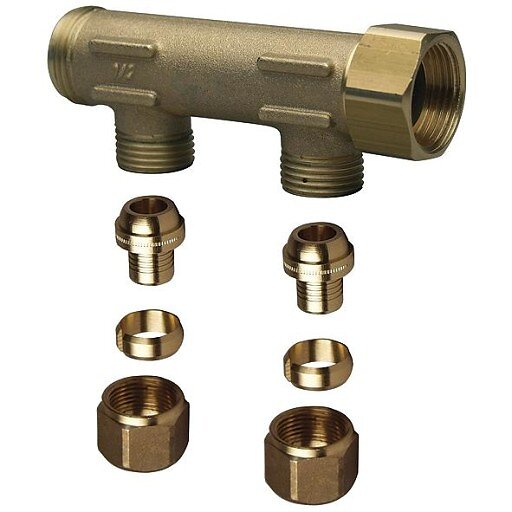 Uponor Fordelerrør 3/4" med løs møtrik 2 grene 15 mm