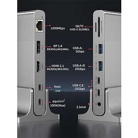 NÖRDIC USB-C 1 till 12 Dockning station 1xDP 8K30Hz 1xHDMI 8K30Hz 1xRJ45 GigaLan 1xUSB-C PD100W 3xUSB 10G 1xUSB 5G 1xSD 1XMicroSD 1x3.5mm AU
