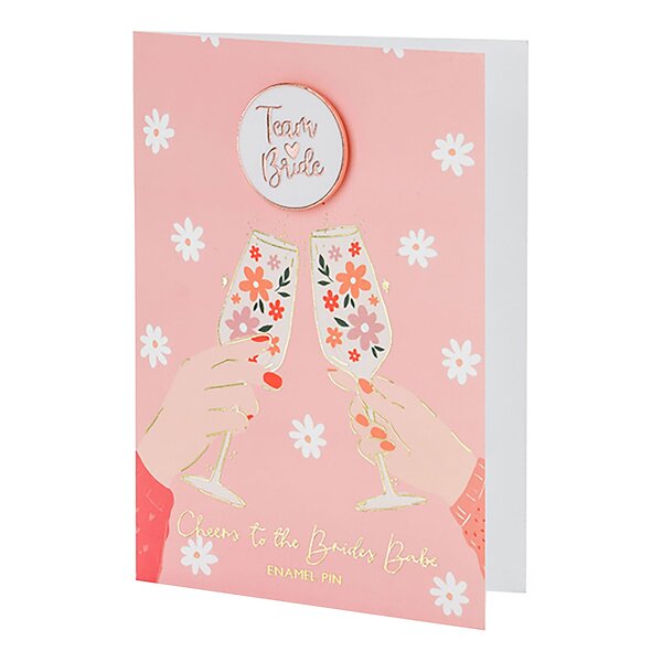 PartyDeco Gratulationskort med Pin Team Bride Rosa
