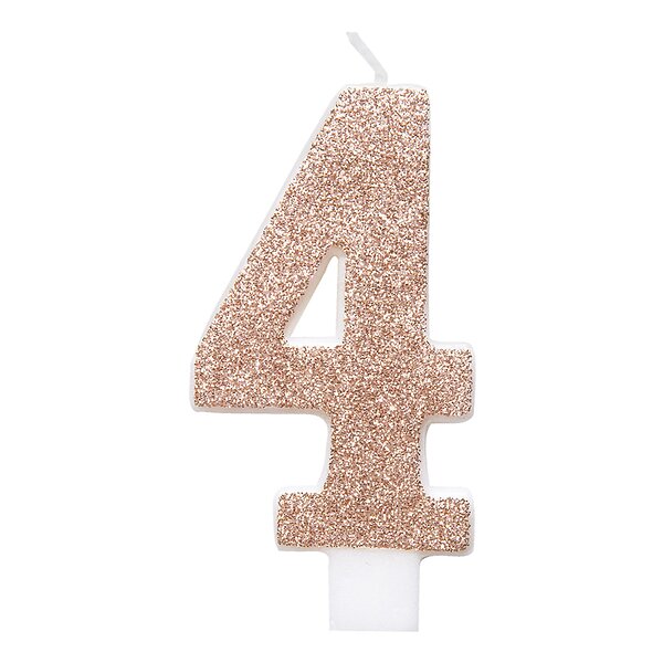 Unique Party Tårtljus Roséguld/Glitter Siffra 4