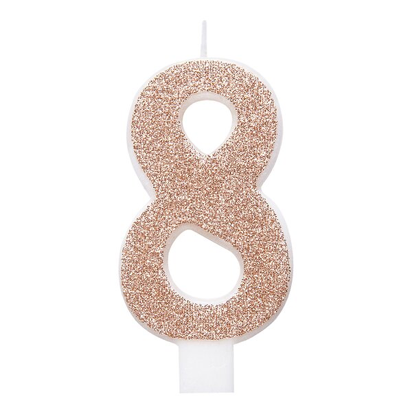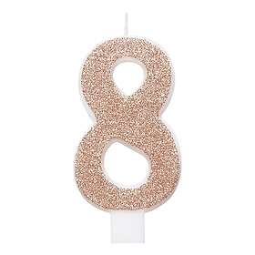 Unique Party Tårtljus Roséguld/Glitter Siffra 8