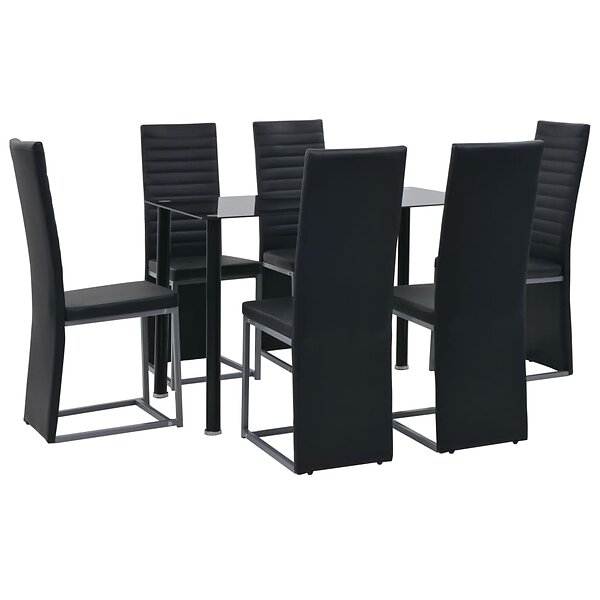 vidaXL Matgrupp 7 delar stål och härdat glas svart 247250