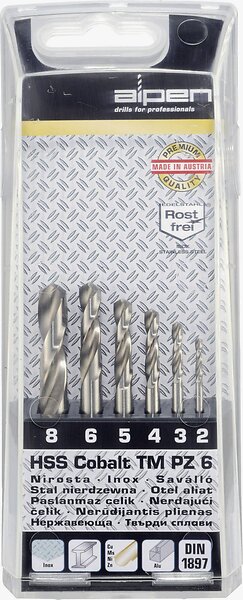 Alpen 100906100 HSS-E Metall-spiralborrset 6 delar Cobalt DIN 1897 Cylinderskaft 1 set
