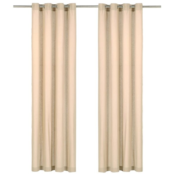 vidaXL Gardiner med metallringar 2 st bomull 140x245 cm beige 134322
