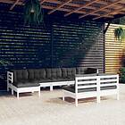 vidaXL Loungegrupp med dynor 9 delar vit massiv furu 3097104