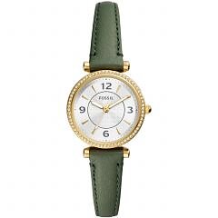 Fossil ES5298 Carlie (28mm) Silver Dial Green Leather Watch
