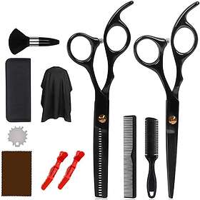 Frisørsæt med saks, kamme, hårklemmer, kappe 11 dele