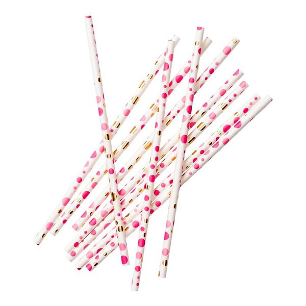 Design House 95 Papperssugrör Pink/Guld Prickar 24-pack