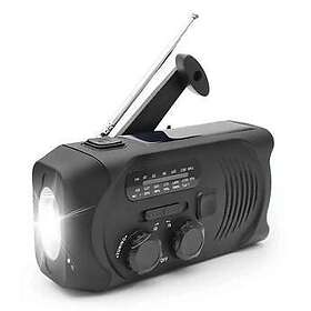 Vevradio Svart med Solceller Ficklampa och 2000mAh Powerbank Nödradio Överlevnad