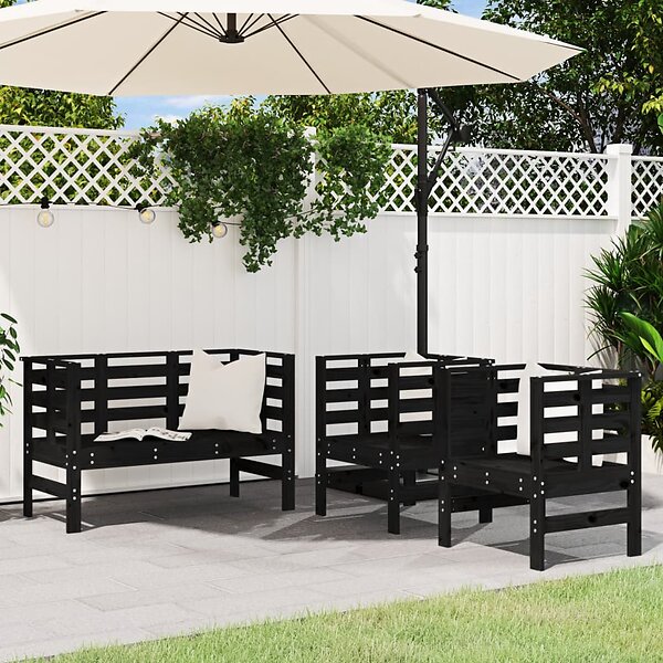 vidaXL Loungegrupp 3 delar svart massiv furu 825146