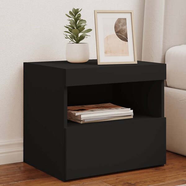 vidaXL Natbord med LED-lys Sort 50x40x45cm 836765