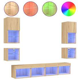 vidaXL TV-bænk 8 delar LED sonoma-ek konstruerat trä 3216592