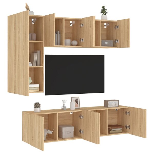vidaXL Väggmonterade TV-enheter 5 delar sonoma-ek konstruerat trä 3216466