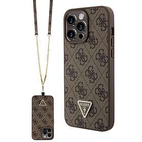 Guess iPhone 15 Pro Max Skal Metal Logo Strass Crossbody Strap Brun