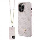 Guess iPhone 15 Pro Max Skal Metal Logo Strass Crossbody Strap Rosa