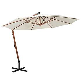 vidaXL Hängande parasoll 350 cm trästång vit 42966