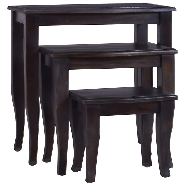 vidaXL Satsbord 3 st ljus svart massiv mahogny 337857