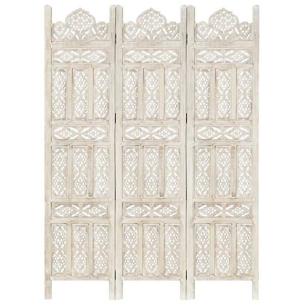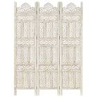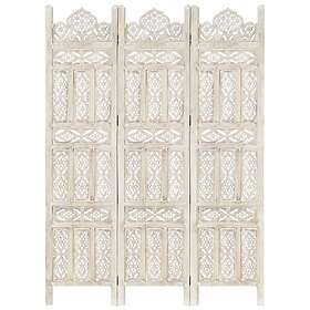 vidaXL Rumsavdelare 3 paneler handsnidad vit 120x165 cm mangoträ 285318