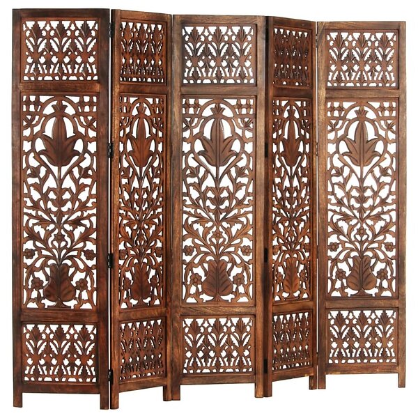 vidaXL Rumsavdelare 5 paneler handsnidad brun 200x165 cm mangoträ 285335