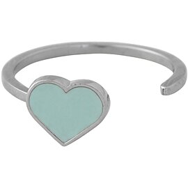 Design Letters Enamel Heart Ring Silver Soft Green
