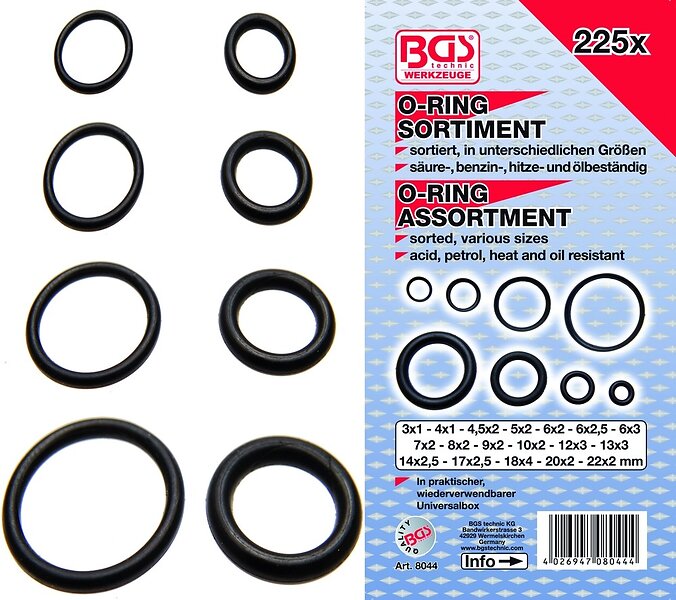BGS O-ringssortiment 3-22mm. 225 delar