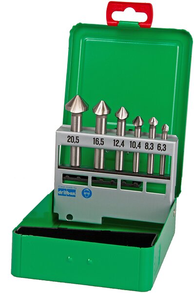 DJ TOOLS försänkaresats 3-skärig HSS 6.3-20.5 mm, stålada 6 st