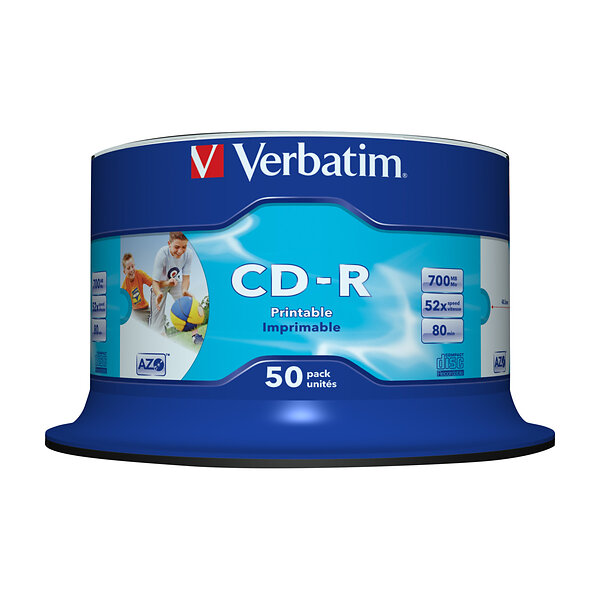 Verbatim Cd-r Azo Wide Inkjet Printable No Id 700 Mb 50 Styck
