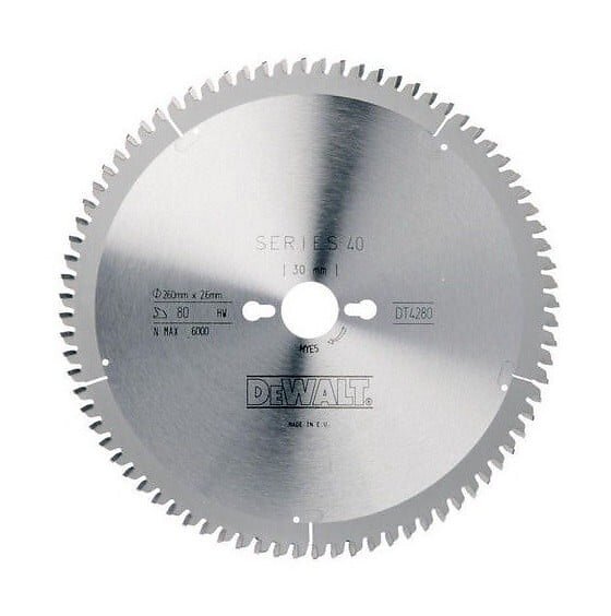 Dewalt DT4280 Sågklinga 260mm 80T (Fina snitt i trä, Aluminium)