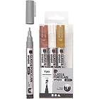 Opaque Glas- og porslinstusch Markers 1-2 mm, Semi, Brun, Guld, Sølv, Hvid, 4-pack