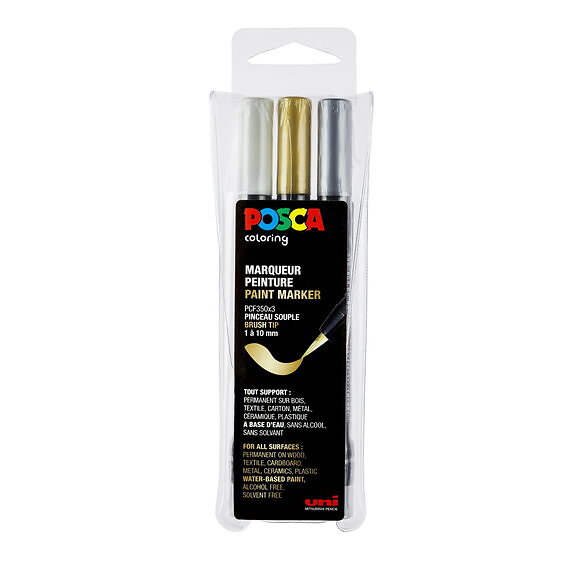 Posca Brush PC-350 3-pack – guld silver vit