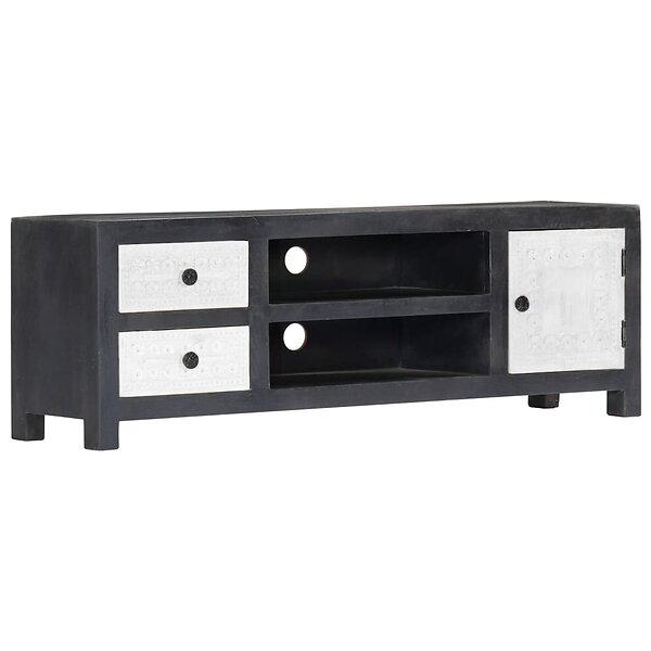 vidaXL TV-bænk handsnidad grå&vit 120x30x40 cm massivt mangoträ 282723