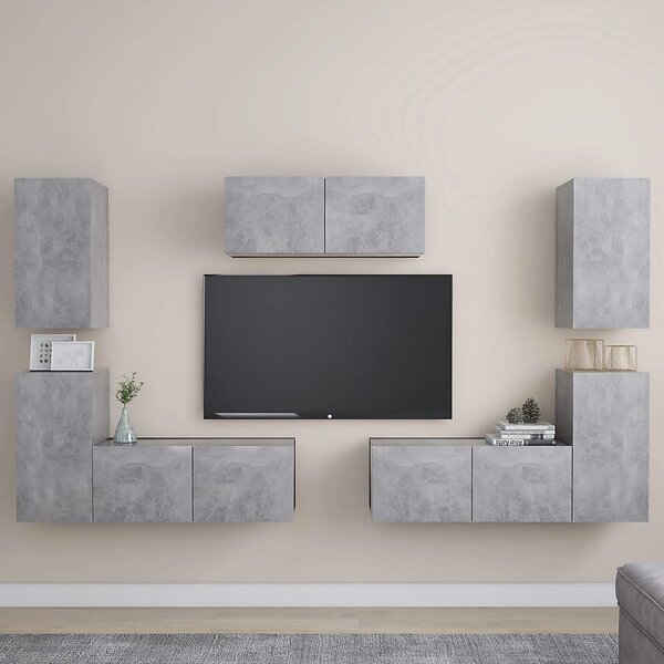 vidaXL TV-skåp 7 delar betonggrå spånskiva 3079092