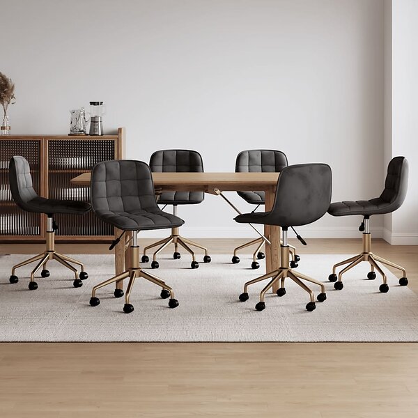 vidaXL Snurrbara matstolar 6 st mörkgrå sammet 3087377