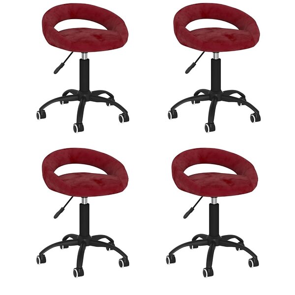 vidaXL Snurrbara matstolar 4 st vinröd sammet 3085848