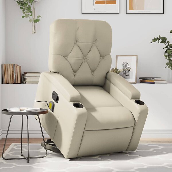 vidaXL Massagefåtölj med uppresningshjälp gräddvit konstläder 3204780