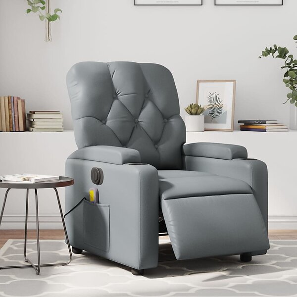 vidaXL Elektrisk massagefåtölj grå konstläder 3204768