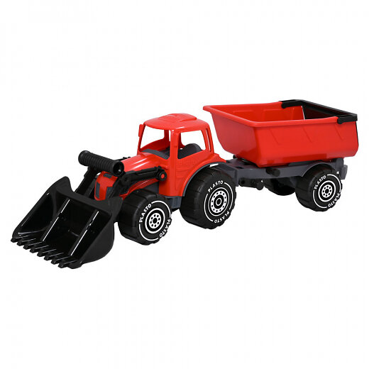 Plasto Traktor med frontlæsser og trailer Rød