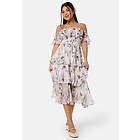 Goddiva Floral Bardot Pleated Midi Dress