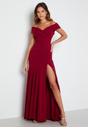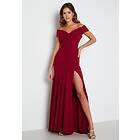 Goddiva Bardot Pleat Maxi Split Dress