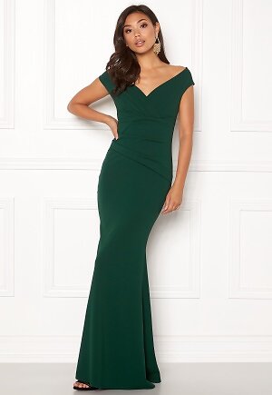 Goddiva Bardot Pleat Maxi Dress