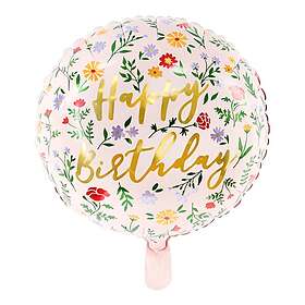 PartyDeco Folieballong Happy Birthday Blommor
