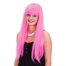 One Lång Rosa Peruk med Lugg size